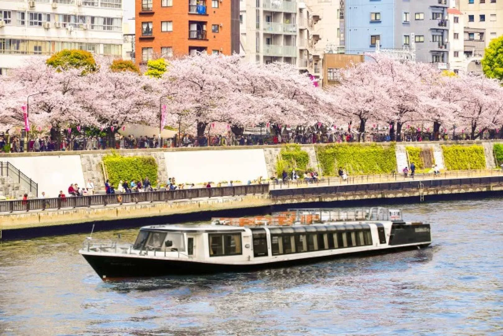 ช่วงฤดูใบไม้ผลิ แม่น้ำสุมิดะจะเต็มไปด้วยต้นซากุระที่บานสะพรั่ง นักท่องเที่ยวสามารถล่องเรือชมซากุระริมแม่น้ำได้อย่างเพลิดเพลิน เรือชมซากุระมีชื่อว่า "ยาคาตาบุเนะ" เป็นเรือไม้ดั้งเดิมของญี่ปุ่น มีพื้นไม้ตาด โคมไฟ และโต๊ะเตี้ยๆ ให้บริการ นักท่องเที่ยวสามารถนั่งชมซากุระและรับประทานอาหารหรือเครื่องดื่มบนเรือได้